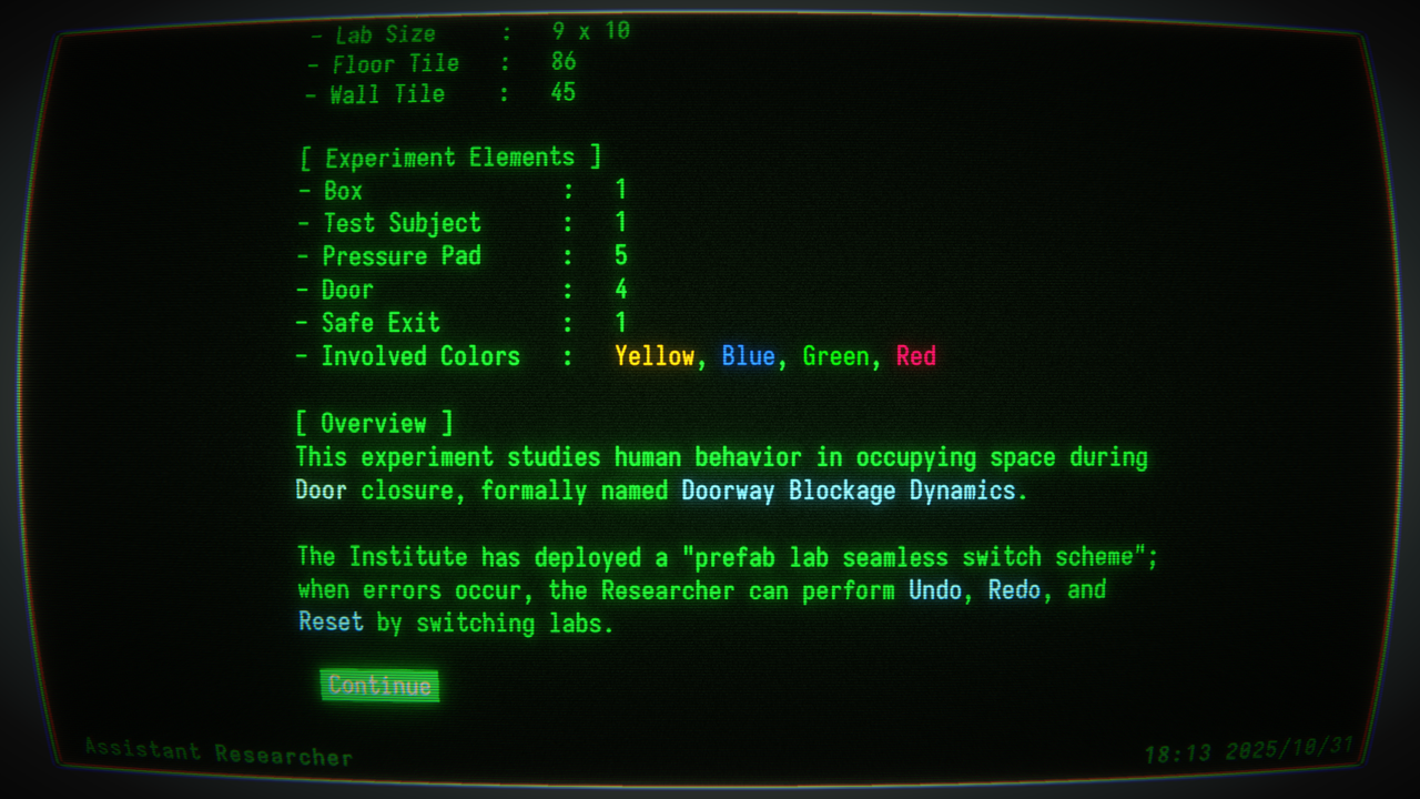 As an intern researcher, remotely command Test Subjects via CRT terminal through absurd "door control" puzzles.